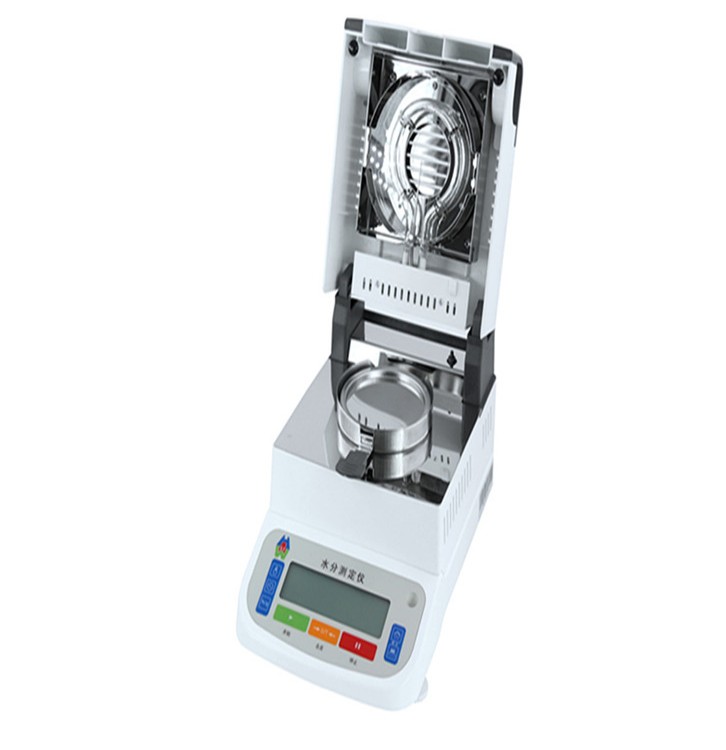 飼料水分測(cè)定儀在測(cè)量樣品重量的同時(shí),儀器采用環(huán)形管鹵素加熱方式,快速干燥樣品,在干燥過程中,水分儀持續(xù)測(cè)量并即時(shí)顯示樣品丟失的水分含量%,儀器系統(tǒng)連續(xù)記錄樣品質(zhì)量, 總的質(zhì)量損失即為水份含量。干燥程序完成后,通過物質(zhì)干燥后的質(zhì)量和濕重的比獲得水分百分比含量和其它結(jié)果(通常亦稱作“熱失重”LOD原理)。最終測(cè)定的水分含量值被鎖定顯示。檢測(cè)結(jié)果符合GB/T29249-2012《電子稱量式烘干法水分檢測(cè)儀》標(biāo)準(zhǔn)以確保被測(cè)樣品的有效驗(yàn)證和產(chǎn)品溯源。