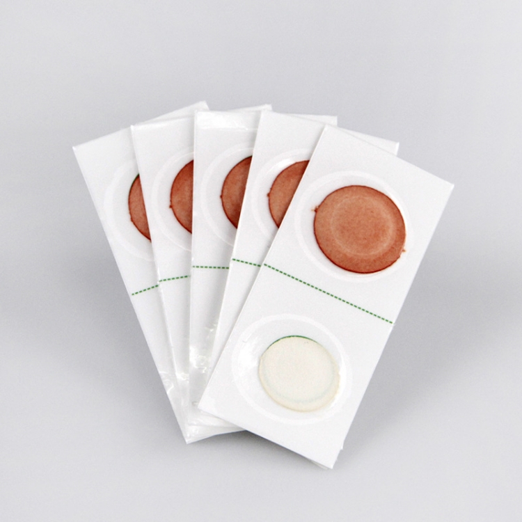 3. 對(duì)折速測(cè)卡,使紅白藥片貼合,手捏或37℃恒溫反應(yīng)3 min;